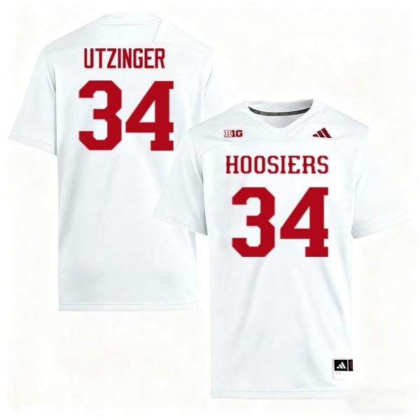 • Men Jeff Utzinger White Indiana Hoosiers #34 College Football Official Jersey - Represent your team with the authentic jersey of Jeff Utzinger, featuring official NCAA branding and player-specific details.