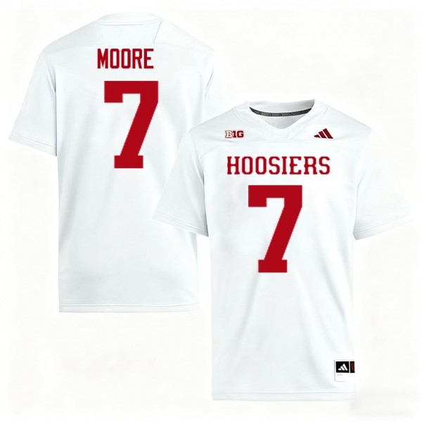 • Men Louis Moore White Indiana Hoosiers #7 College Football 2025 Jersey - Represent your team with the authentic jersey of Louis Moore, featuring official NCAA branding and player-specific details.