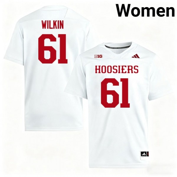 • Women Baylor Wilkin White Indiana Hoosiers #61 College Football Embroidery Jerseys - Represent your team with the authentic jersey of Baylor Wilkin, featuring official NCAA branding and player-specific details.