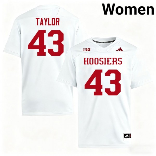 • Women Bryce Taylor White Indiana Hoosiers #43 College Football High School Jersey - Represent your team with the authentic jersey of Bryce Taylor, featuring official NCAA branding and player-specific details.