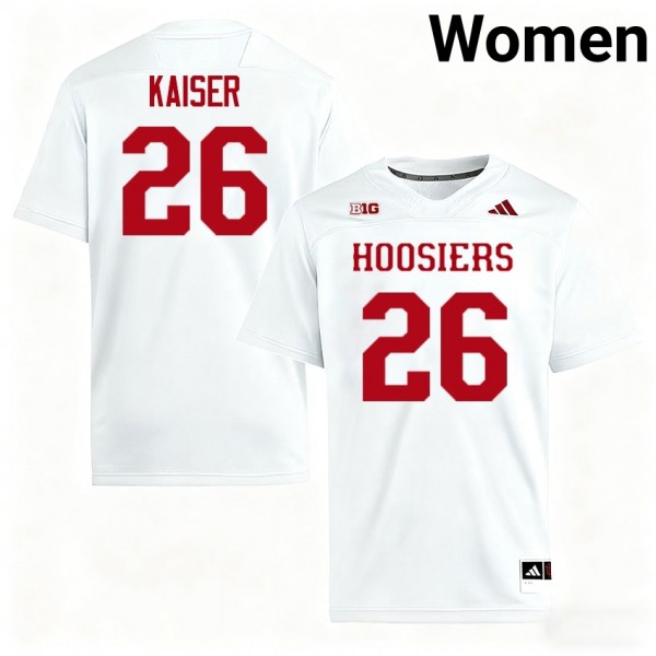 • Women Cade Kaiser White Indiana Hoosiers #26 College Football Game Jersey - Represent your team with the authentic jersey of Cade Kaiser, featuring official NCAA branding and player-specific details.