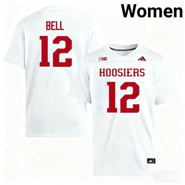 • Women Jacob Bell White Indiana Hoosiers #12 College Football 2025 Jersey - Represent your team with the authentic jersey of Jacob Bell, featuring official NCAA branding and player-specific details.
