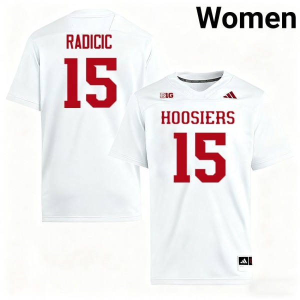 • Women Nico Radicic White Indiana Hoosiers #15 College Football Replica Jerseys - Represent your team with the authentic jersey of Nico Radicic, featuring official NCAA branding and player-specific details.