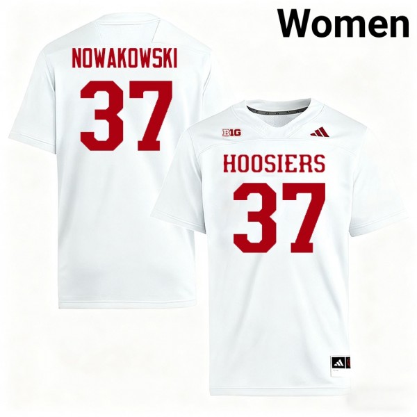 • Women Riley Nowakowski White Indiana Hoosiers #37 College Football Embroidery Jersey - Represent your team with the authentic jersey of Riley Nowakowski, featuring official NCAA branding and player-specific details.