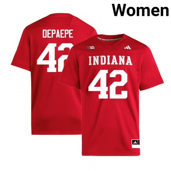 • Women's Andrew Depaepe Crimson Indiana Hoosiers #42 College Football Replica Jersey - Represent your team with the authentic jersey of Andrew Depaepe, featuring official NCAA branding and player-specific details.