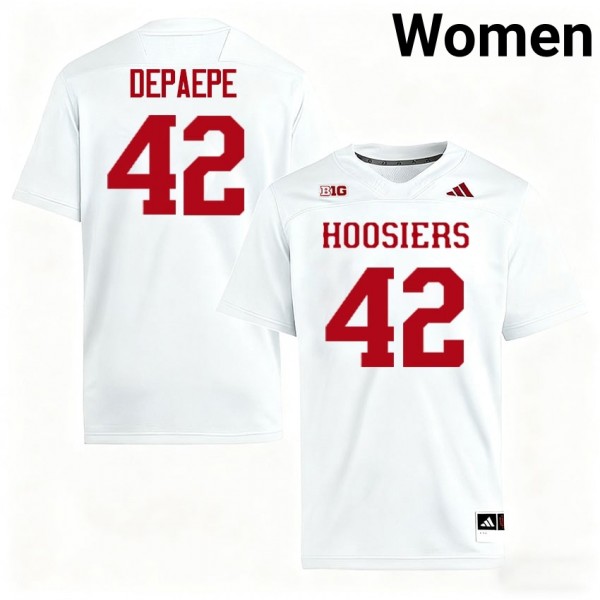 • Women's Andrew Depaepe White Indiana Hoosiers #42 College Football Stitched Jersey - Represent your team with the authentic jersey of Andrew Depaepe, featuring official NCAA branding and player-specific details.