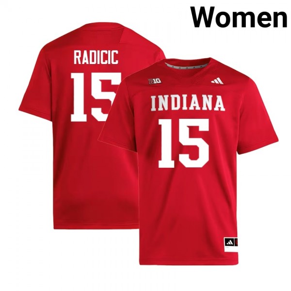 • Womens Nico Radicic Crimson Indiana Hoosiers #15 College Football Embroidery Jerseys - Represent your team with the authentic jersey of Nico Radicic, featuring official NCAA branding and player-specific details.