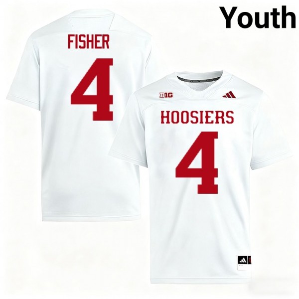 Youth Aiden Fisher White Indiana Hoosiers #4 College Football 2025 Jersey 737850-968