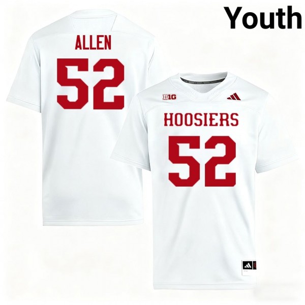 • Youth Clayton Allen White Indiana Hoosiers #52 College Football University Jerseys - Represent your team with the authentic jersey of Clayton Allen, featuring official NCAA branding and player-specific details.