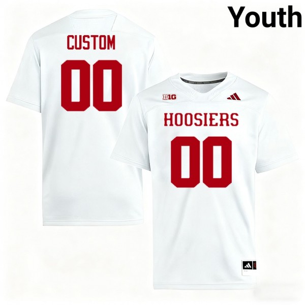 • Youth Custom White Indiana Hoosiers #00 College Football University Jersey - Represent your team with the authentic jersey of Custom, featuring official NCAA branding and player-specific details.