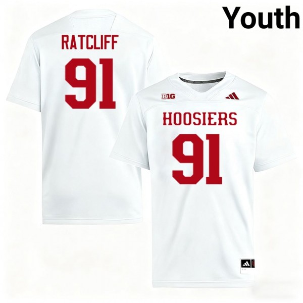 Youth Dominique Ratcliff White Indiana Hoosiers #91 College Football Embroidery Jersey 684167-233