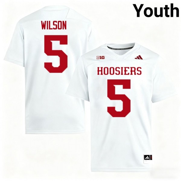 Shop the latest Youth Grant Wilson White Indiana Hoosiers #5 College Football Game Jersey 301741-354 online for unbeatable prices. Don't miss this limited time offer to show your support for your favorite player. Order now and elevate your game day look!