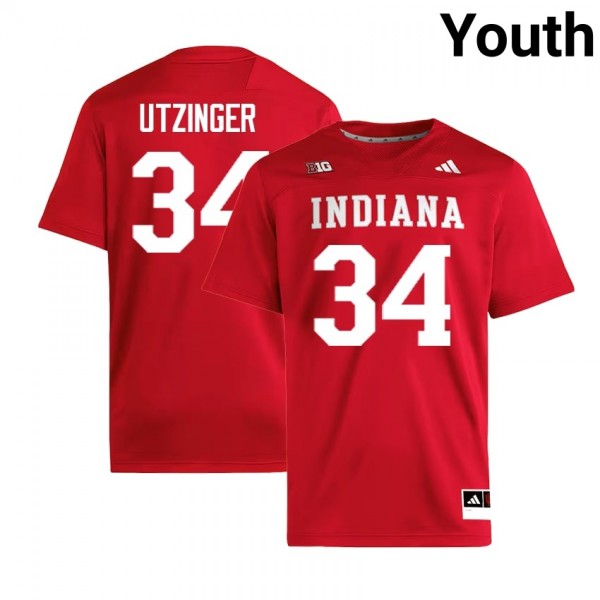 Youth Jeff Utzinger Crimson Indiana Hoosiers #34 College Football 2025 Jerseys 418382-699