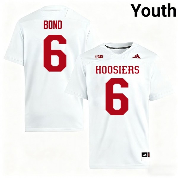 • Youth LeBron Bond White Indiana Hoosiers #6 College Football High School Jersey - Represent your team with the authentic jersey of LeBron Bond, featuring official NCAA branding and player-specific details.