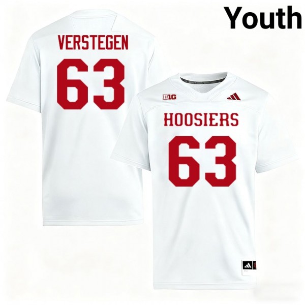 • Youth Mitch Verstegen White Indiana Hoosiers #63 College Football Embroidery Jersey - Represent your team with the authentic jersey of Mitch Verstegen, featuring official NCAA branding and player-specific details.